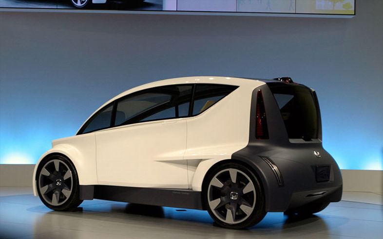 The grammatically-challenged Personal-Neo Urban Transport is a rear-engine, rear-drive three-seater that clearly draws inspiration from the Japanese kei car despite being designed at Honda's Los Angeles-based Advanced Design Center. Its 133.8-inch overall length is equal to the maxium allowed for a kei car, though its 68.9-inch width far exceeds the kei car maximum. It's not a particularly tall vehicle, however, topping out at 56.7 inches.